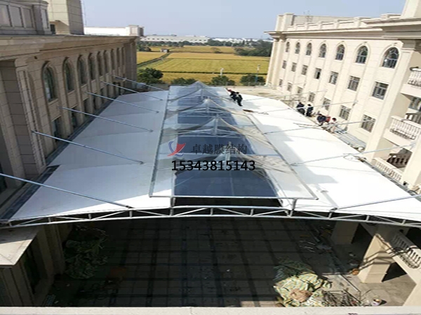 膜結構雨棚是一種全新的建筑結構形式,它集建筑學、結構力學、精細化工與材料科學、計算機技術等為一體,具有很高技術含量。其曲面可以隨著建筑師的設計需要任意變化,結合整體環(huán)境,建造出標志性的形象工程。